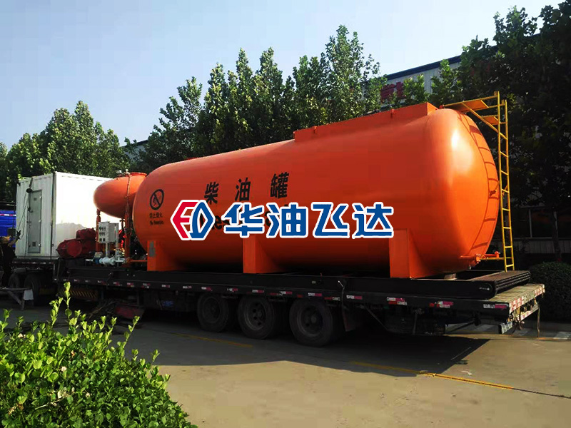 高架柴油罐和小型集装箱房装车准备发货