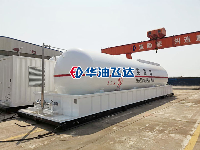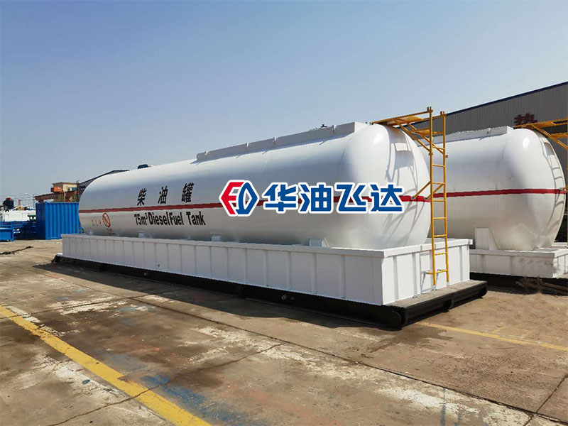 某客户定制的柴油罐生产完成准备发货。