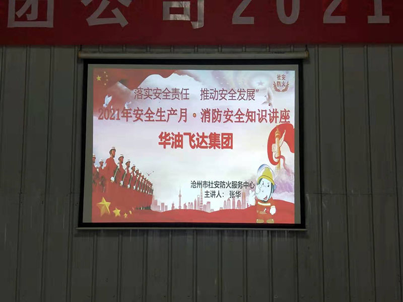 2021年6月9日消防部门人员观摩华油飞达集团组织的消防应急救援演练。组长曹利军主持此次演练。沧州市社安防火服务中心的张老师对大家就消防安全知识进行了培训和指导。